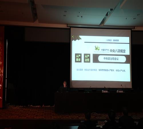 會(huì)上,劉潤(rùn)詳細(xì)講解了八項(xiàng)規(guī)定政策精神,分析了近年來(lái)違反八項(xiàng)規(guī)定的典型案例,并以自身多年的工作經(jīng)驗(yàn),對(duì)落實(shí)落細(xì)八項(xiàng)規(guī)定政策精神進(jìn)行了深入的講解和剖析。